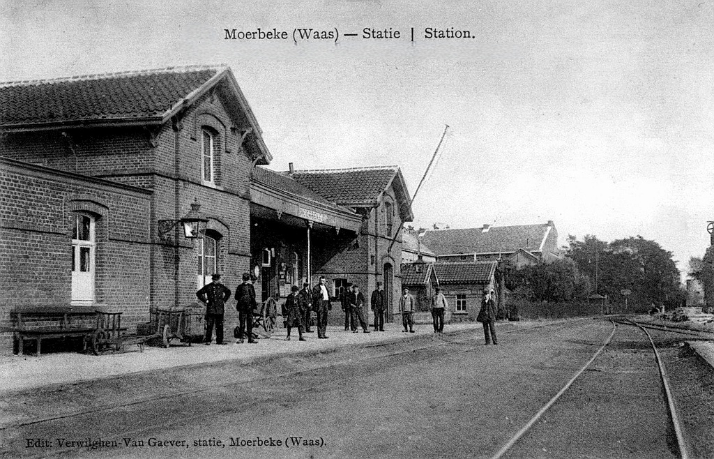 Le premier bâtiment de gare a été construit pour la Compagnie du chemin de fer de Lokeren à la frontière des Pays-bas, avec une architecture très similaire à celui du Chemin de fer Gand-Terneuzen.