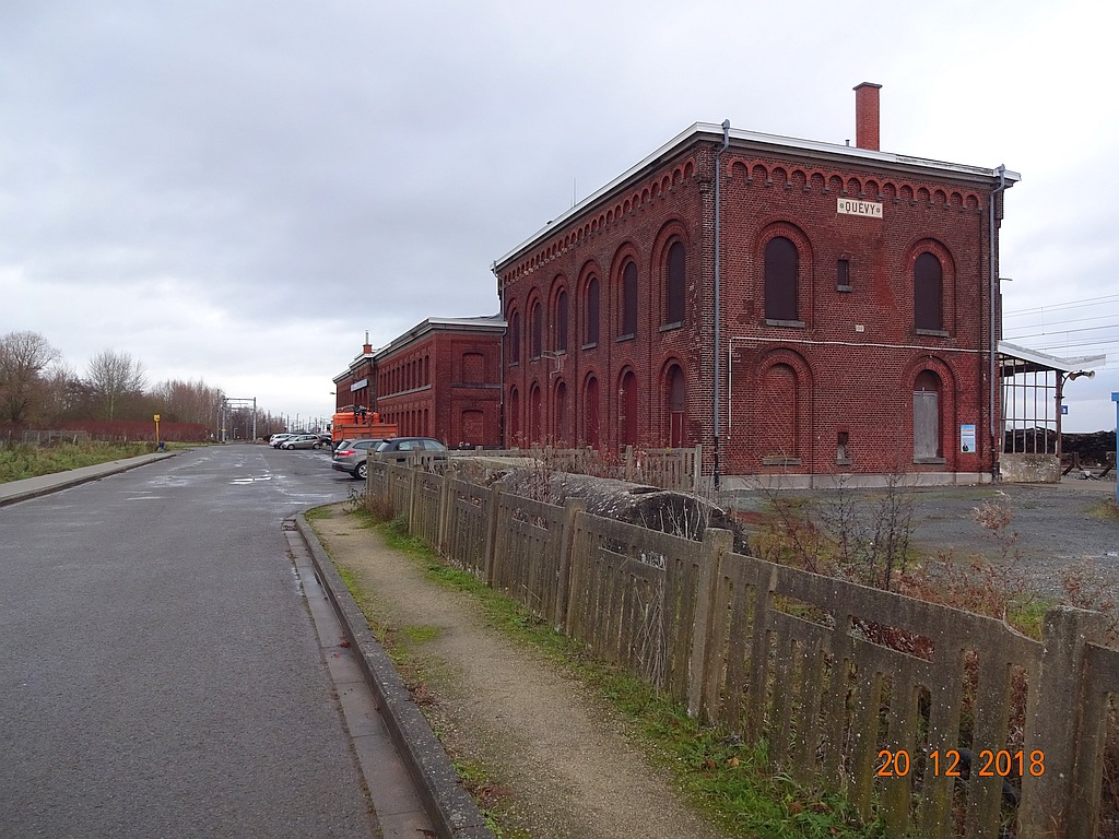 Côté rue la façade de celui de Quévy fait penser à une usine avec ses 2 étages de petites fenêtres, l'aspect d'origine était celui que l'on voit côté quais avec de grandes ouvertures au sommet arrondi. À noter que Feignies avait eu le même type d'agrandissement ; là-aussi les Allemands ont fait des dégâts en partant et il existe des photos montrant à travers les gravats la forme d'origine qui ressort.