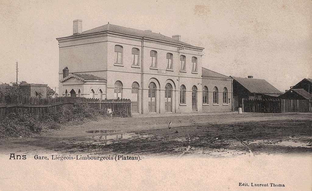 à noter que lorsque cette photo a été prise l'autre gare d'Ans, sur la ligne de l'Etat Belge, avait un grand bâtiment