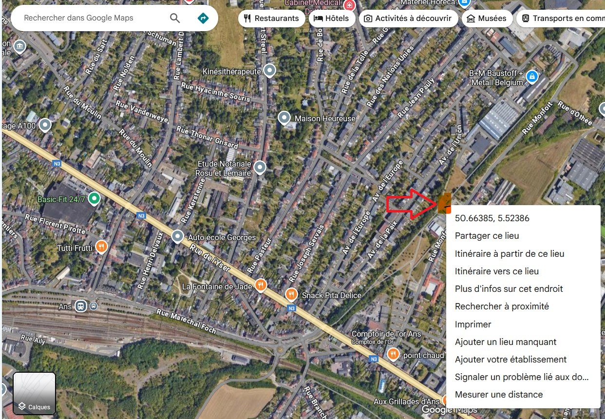 la gare d'Ans-Est et redescendant vers la Meuse avec une pente fort abrupte, servant les charbonnages de la région.